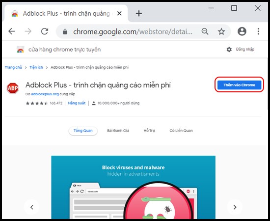 Bước 3 - Chọn Thêm tiện ích mở rộng. Trình duyệt Chrome sẽ làm mới trang khi AdBlock cài đặt xong.