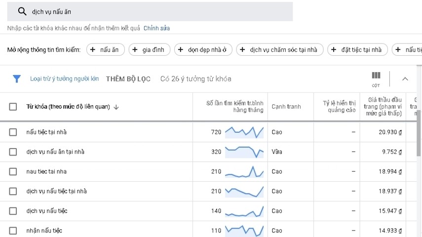 Nghiên cứu từ khoá bằng công cụ google keyword planner
