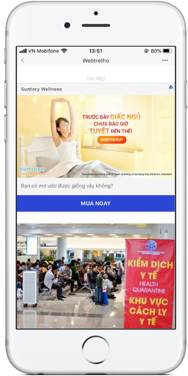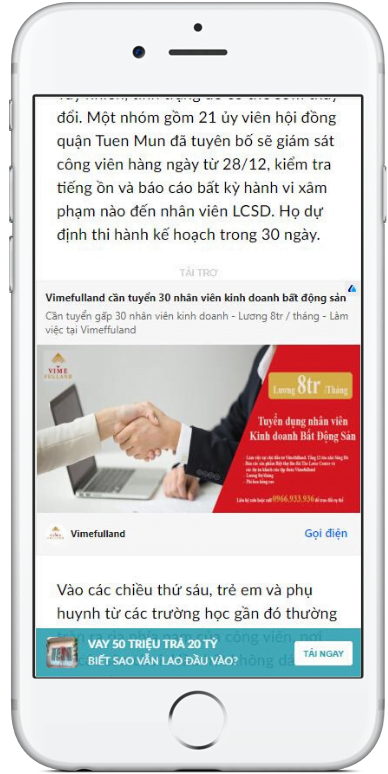 - Quảng cáo xuất hiện trên trang Báo Mới: