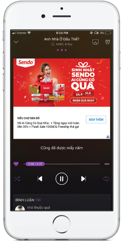 - Quảng cáo xuất hiện trong app Zing MP3: